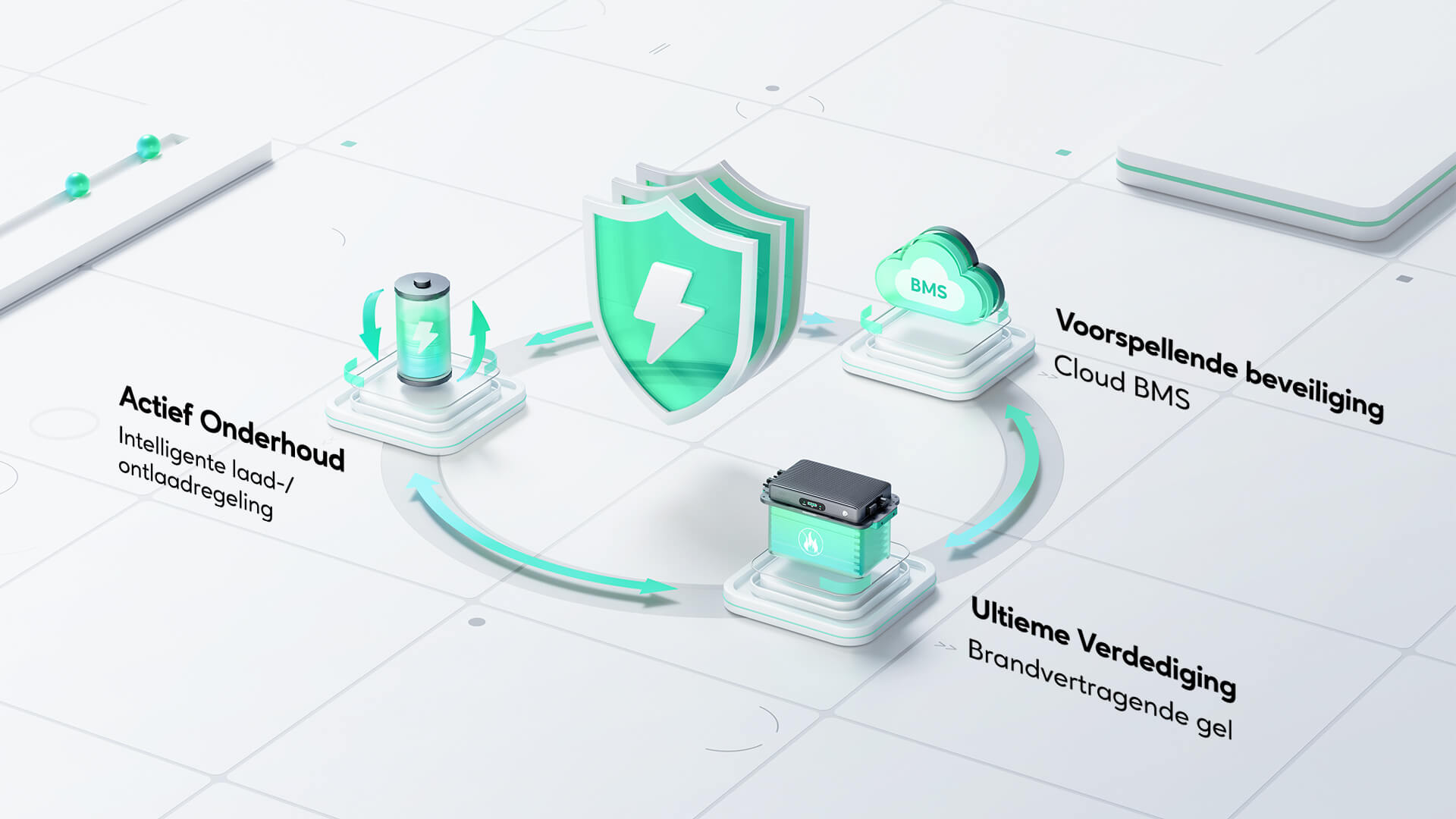 IP65-behuizing, 34-laagse BMS-beveiliging, overstroom- en overspanningsbeveiliging, TÜV/CE/EMC/VDE gecertificeerd.