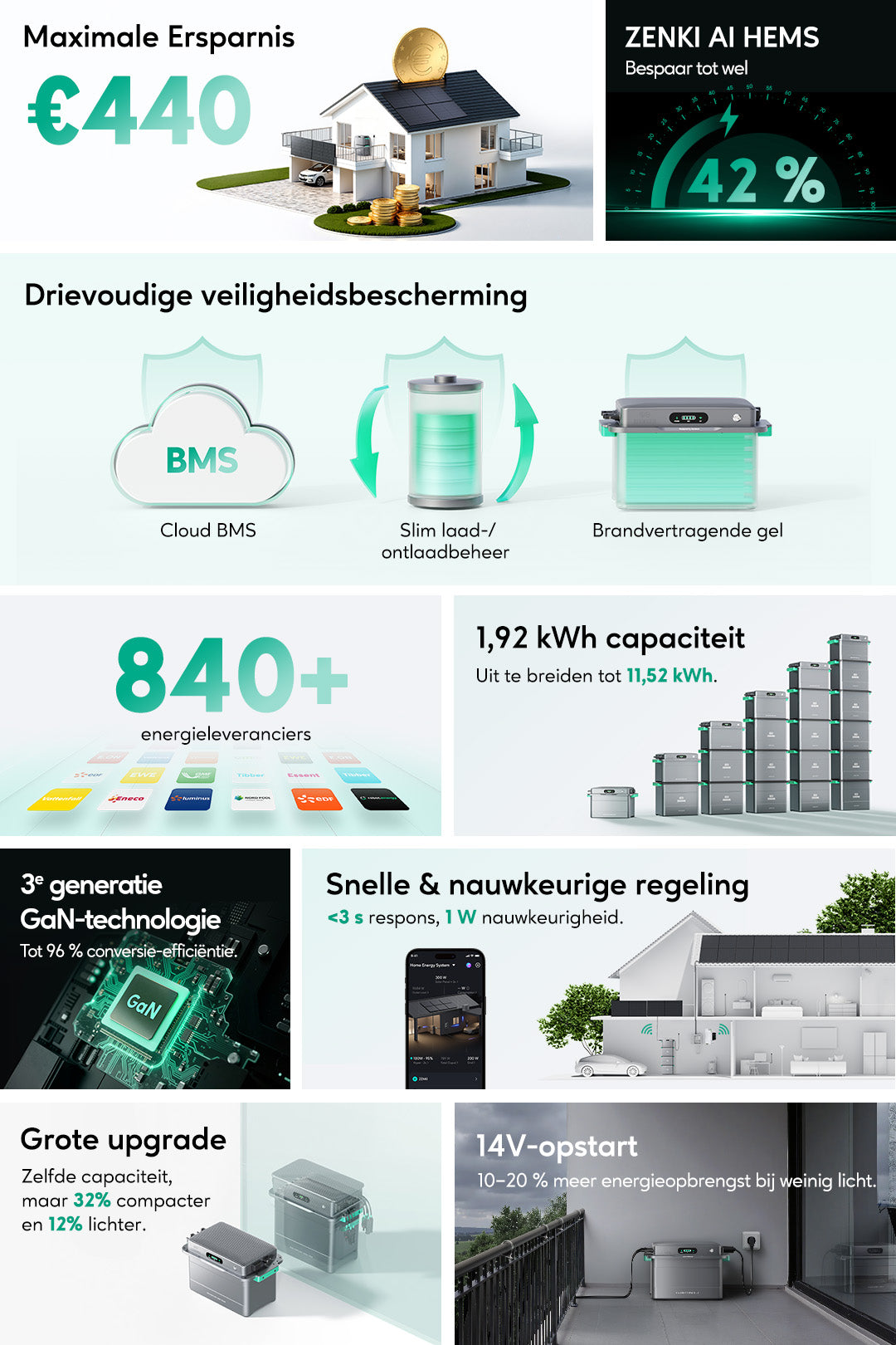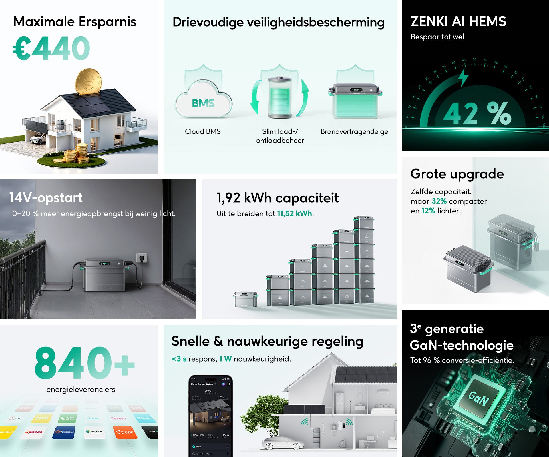• 1,92 kWh capaciteit, uitbreidbaar tot 11,52 kWh