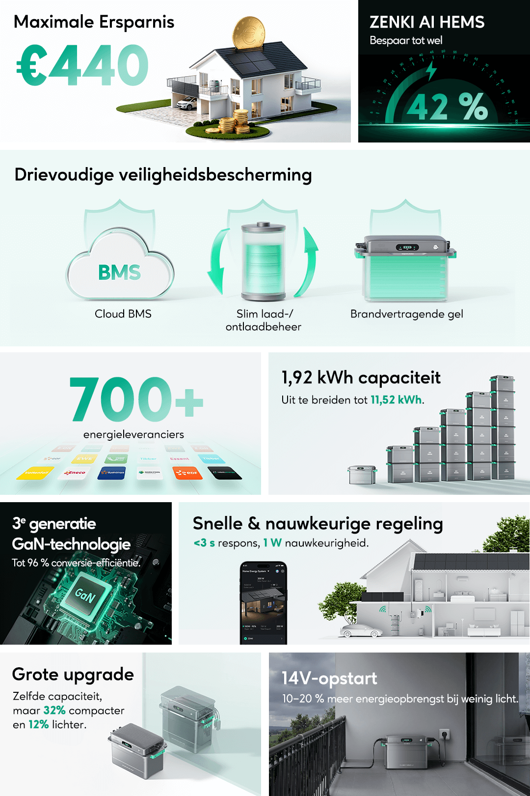 MPPT 1800W, 900W x 2 | Uit te breiden tot 7,68 kWh | Ondersteuning zonnepanelentot 2400W