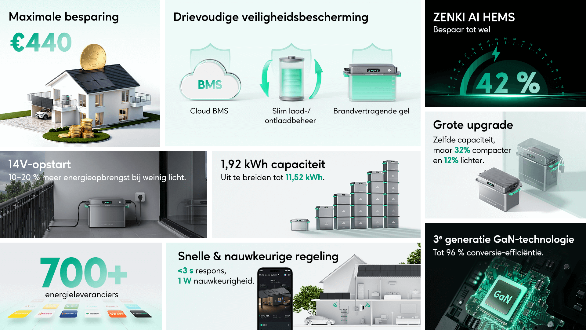 MPPT 2640W, 660W x 4 | Uit te breiden tot 11,52 kWh | 1000W off-grid vermogen
