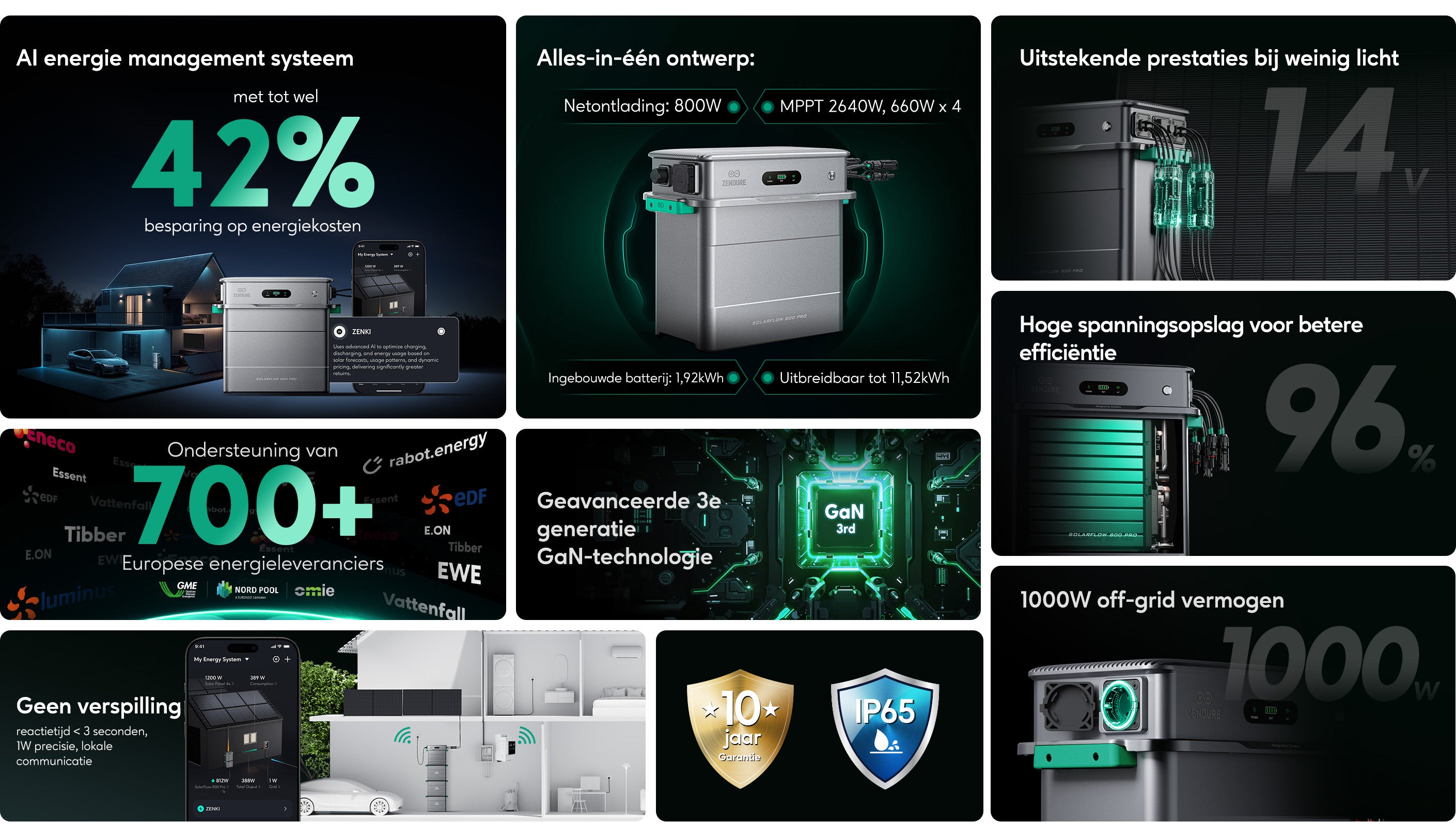 MPPT 2640W, 660W x 4 | Uit te breiden tot 11,52 kWh | 1000W off-grid vermogen
