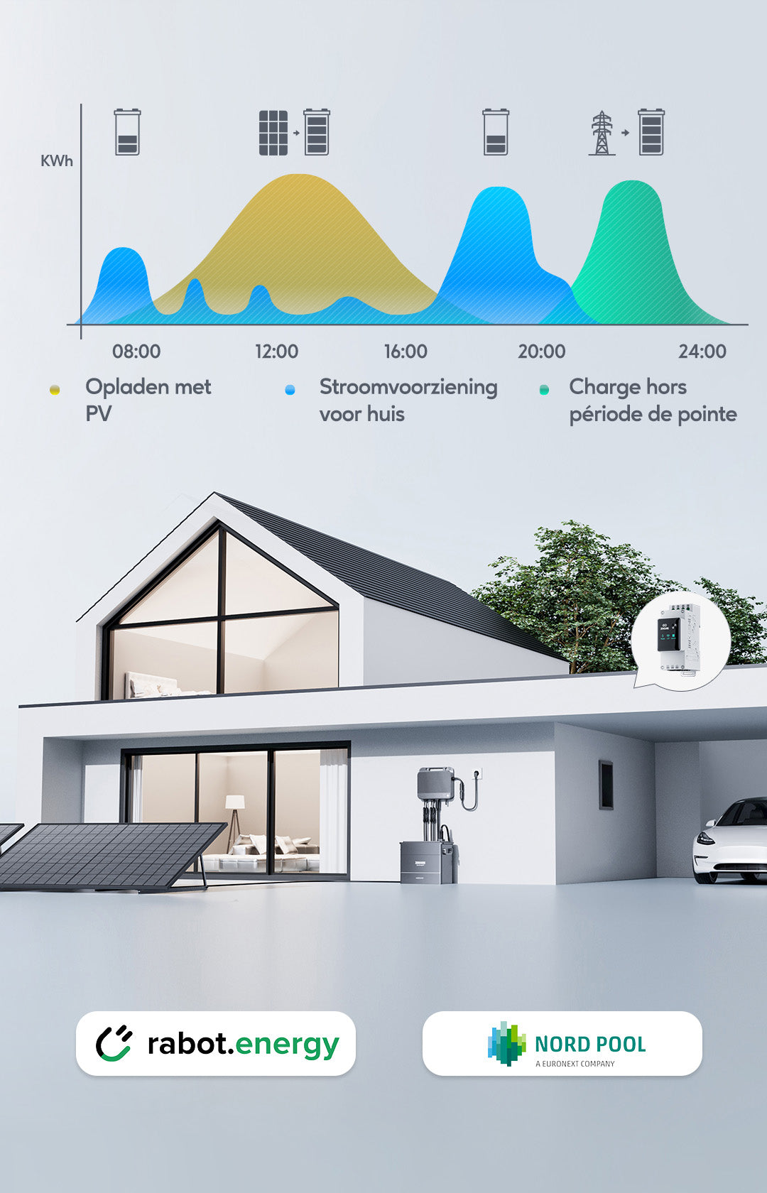 Dynamische stroomtarieven (time of use tarieven): Laad op wanneer de stroom goedkoop is, ontlaad bij dure tarieven. Intelligente ontlaadbeveiliging: Bij weinig zon schakelt het systeem automatisch over op netstroom en voorkomt het overontlading → verlenging van de levensduur van de batterij