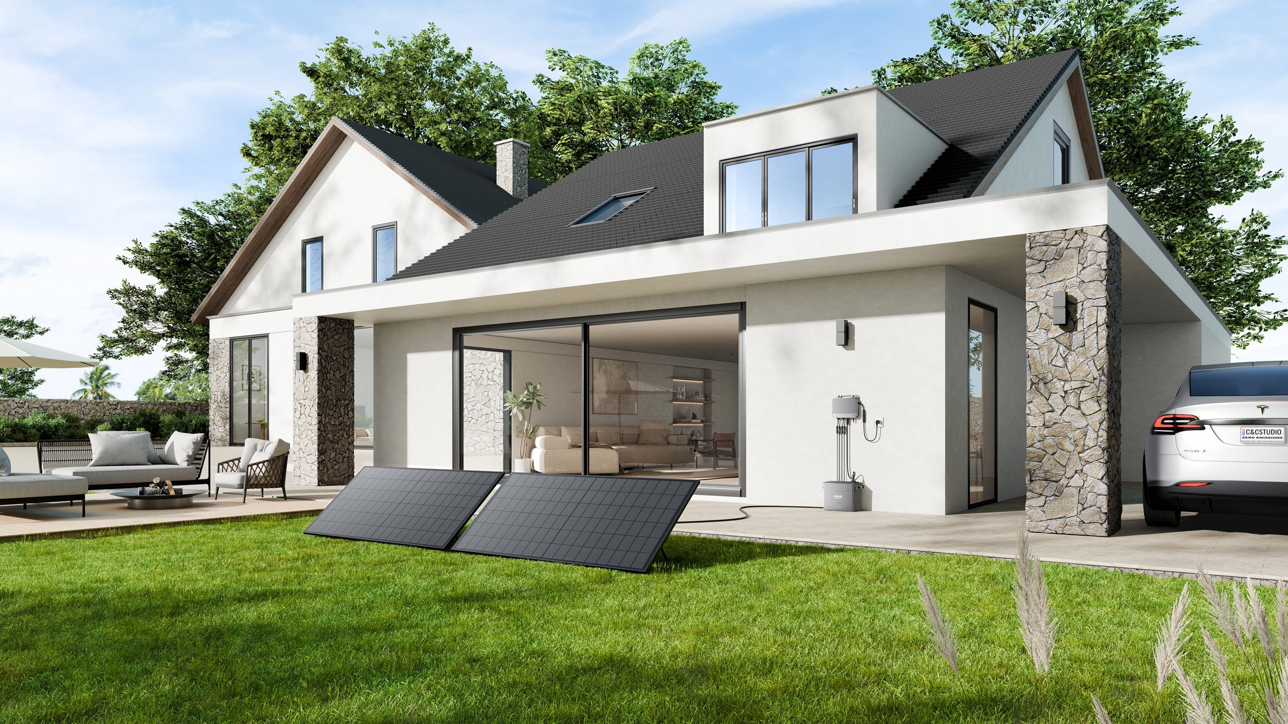 Regenachtige of mistige dagen zorgen voor minder opbrengst, de zonnepanelen werken nog steeds maar zijn dan minder efficiënt. U kunt extra zonne-energie in accu's opslaan, of goedkoop opladen tijdens daluren. Door slim energiebeheer bespaart u kosten, zelfs wanneer het zonlicht minder is.