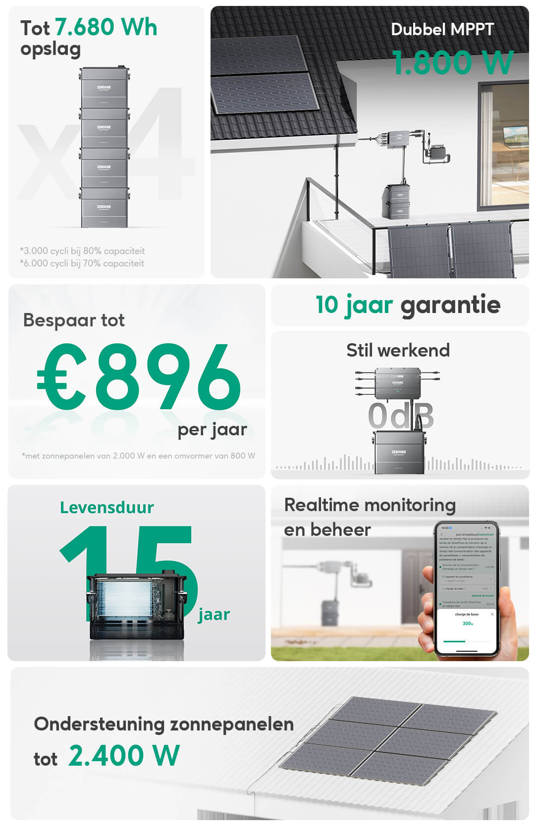 Compatibiliteit met zonnepanelen tot 2.400 W voor optimale prestaties