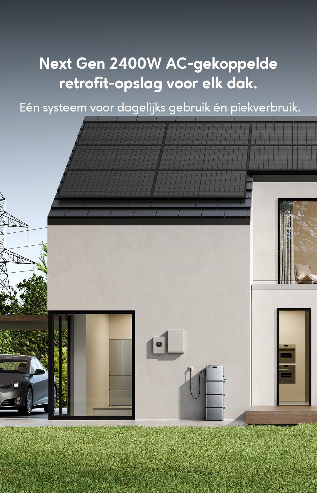 De SolarFlow 2400 AC+ kan niet direct op PV-modules worden aangesloten, maar kan worden gebruikt als een AC-gekoppeld opslagsysteem voor een bestaand PV-systeem.